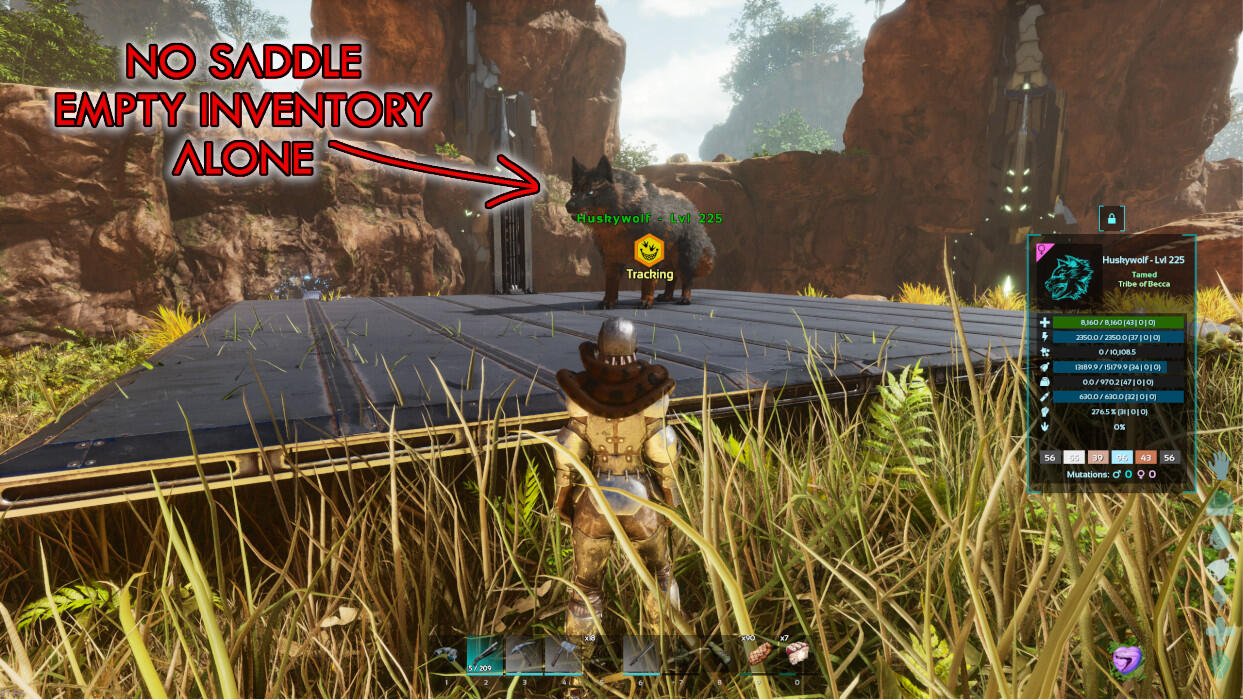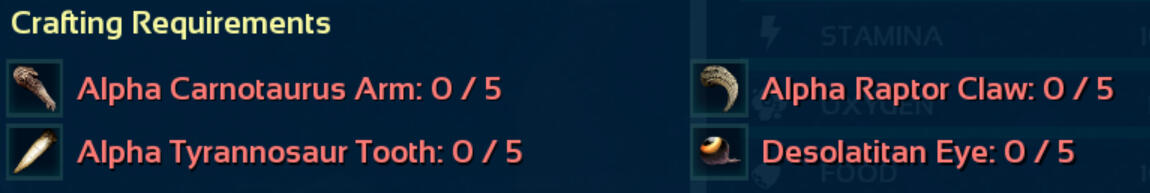 Kill a creature with up to 150 Drag Weight and drag the corpse to the Rex, same as Carcha Taming. Rex will no longer be aggressive to the player. It’ll wander around and periodically generate prompts, such as the player needing to stand still, give it pets, or give it a specified food. If the food isn’t available, just wait for the next prompt. Once the Rex trusts you, mount it and kill everything like a Carcha.